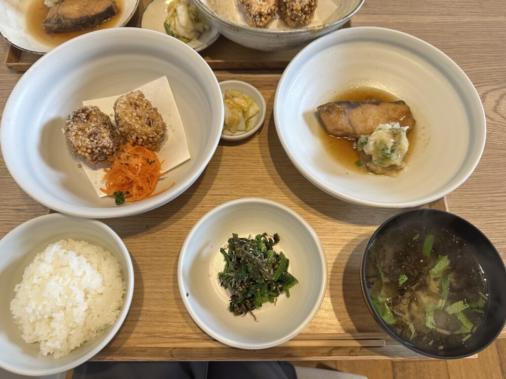 2025.04.25 スタッフブログ大和田店山本麻央 健康ランチ😋 大好きなご飯屋さんで ゆっくりランチしてきました😋🍴💕 いつもなかなかバランス良く食べるって難しいのですが ここのご飯はいつも元気が貰える気がします😄 苦手なものも美味しく食べれるって不思議ですよね😱! 春は体調崩しやすいので 健康に気をつけて過ごしたいと思います🫧🫧