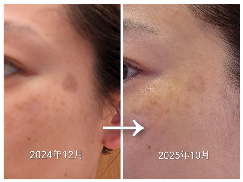 色んなスキンケアアイテムを使い始める前は必ずbeforeの写真を撮っていて、去年の12月のシミと、今のシミ