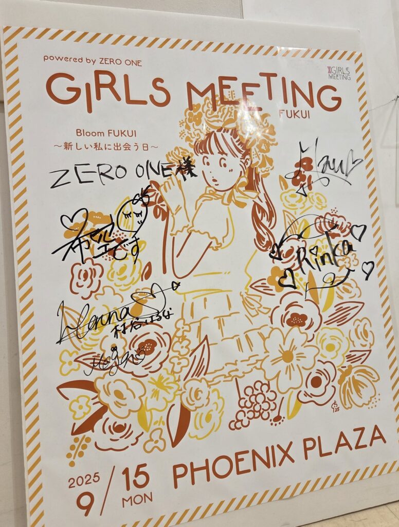 2025.10.28 スタッフブログ大和田店羽野千晶 掲示中 いつもありがとうございます、大和田店の羽野デス🤗 9月に行われた「ガールズミーティング in 福井」ゲストモデルで来てくださった望空ちゃんたちのサイン入りポスターを大和田店の入口に掲示しています❤ 正直、福井で開催して盛り上がるのかな・・・って思ってた。。。出演モデルさんたちも「えー、、、わからん、、、、」って感じで でも、ヤングたちはみんな知ってた😲キャーキャー言ってました🙌 今度はイケメンズモデル来てほし‐‐‐‐❤と思ってます❤(誰か分からんけど、、、、)