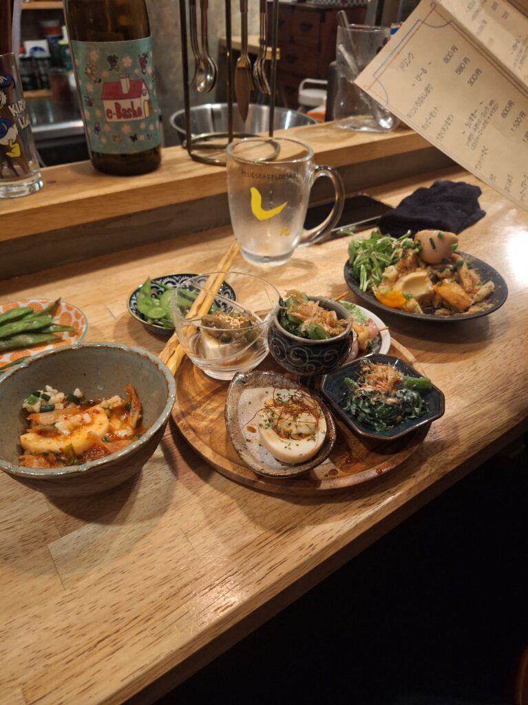 私のオススメは山芋キムチとポテトサラダと写真には写ってないですが、つくね三種盛りがとってもとってもおいしかったです♡♡